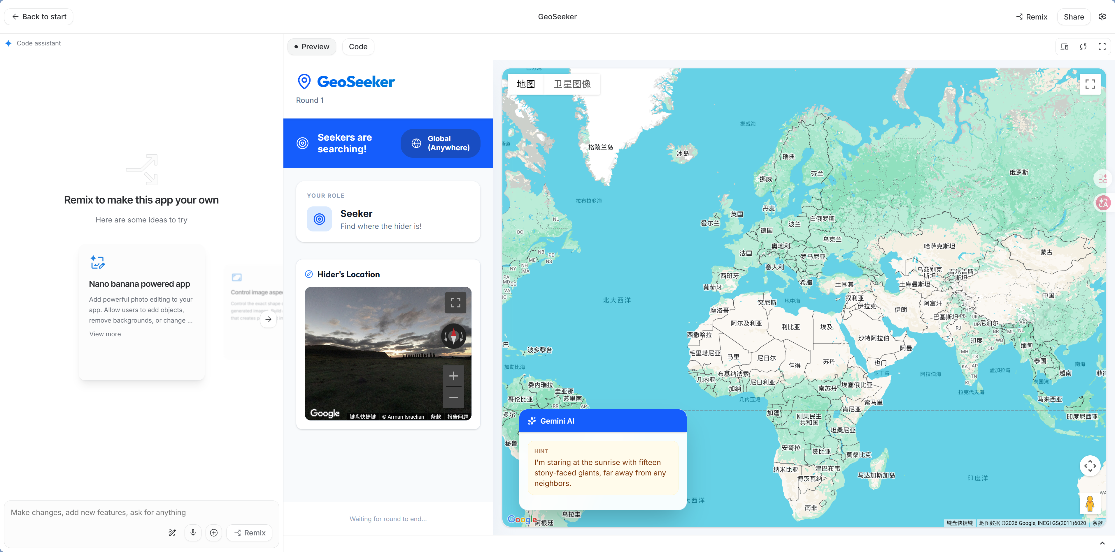 Google 的 AI 应用开发平台,可以用 Gemini 模型生成完整的 Web 应用,包括 UI 界面。你可以把它理解成一个在线版的 Claude Code,但由 Google 提供,打开浏览器就能用,不需要本地环境。