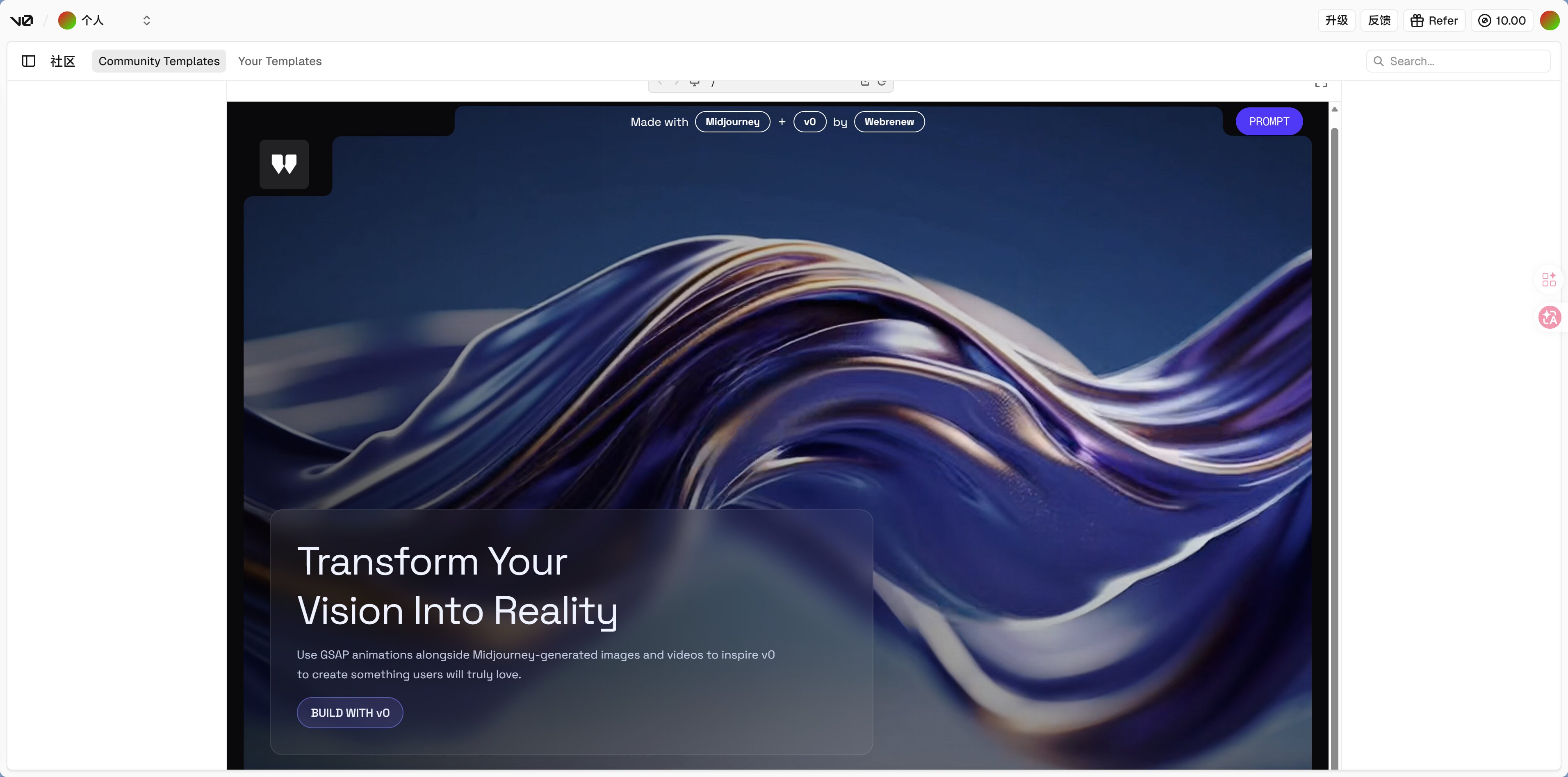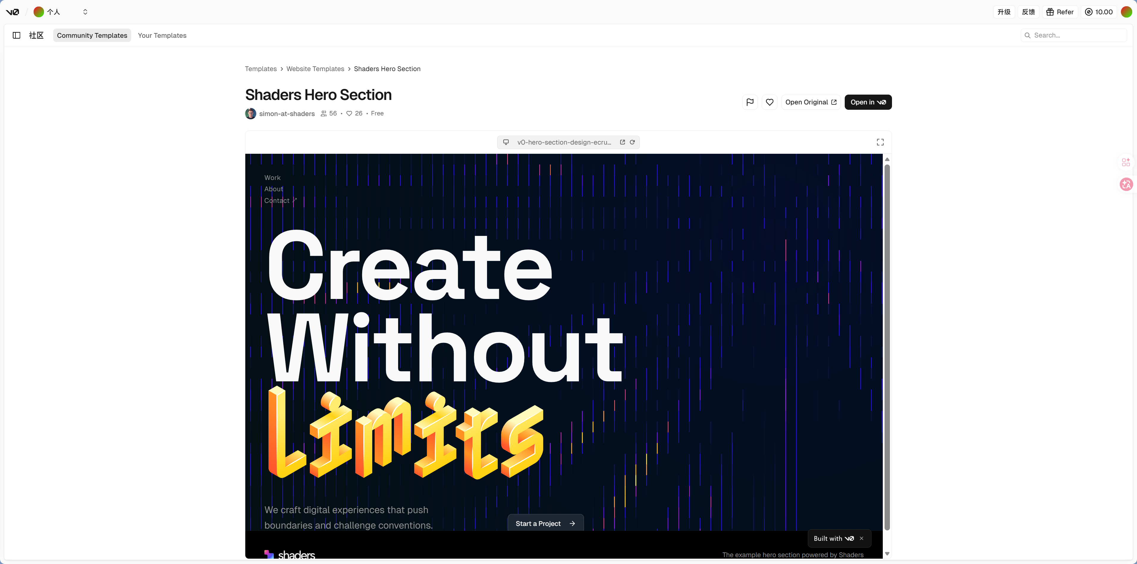 Vercel 出品,用自然语言描述你想要的界面,它直接生成 React + Tailwind + shadcn/ui 代码。