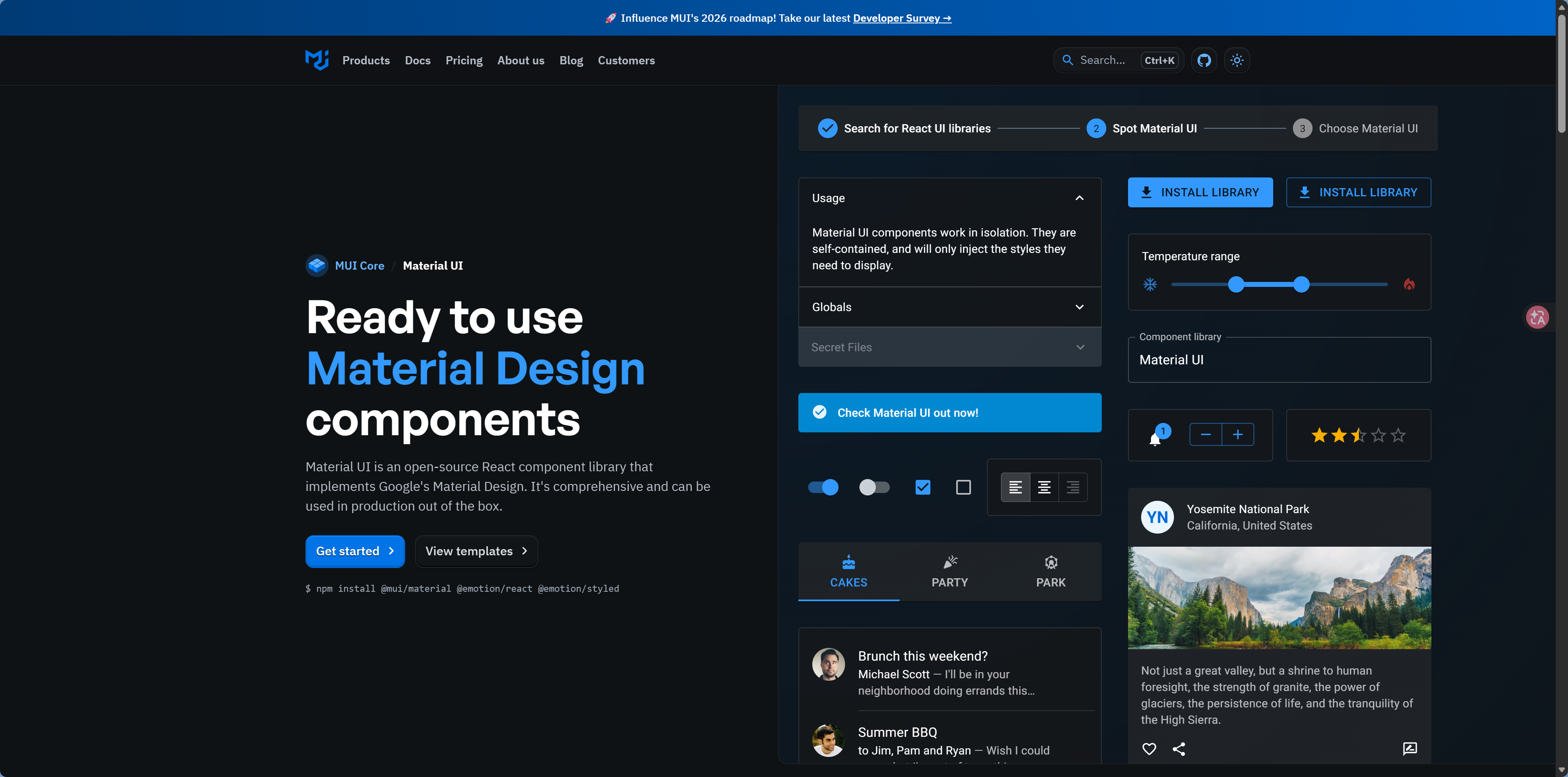 本节目标:了解主流组件库的特点和适用场景,学会根据项目需求选择合适的组件库。